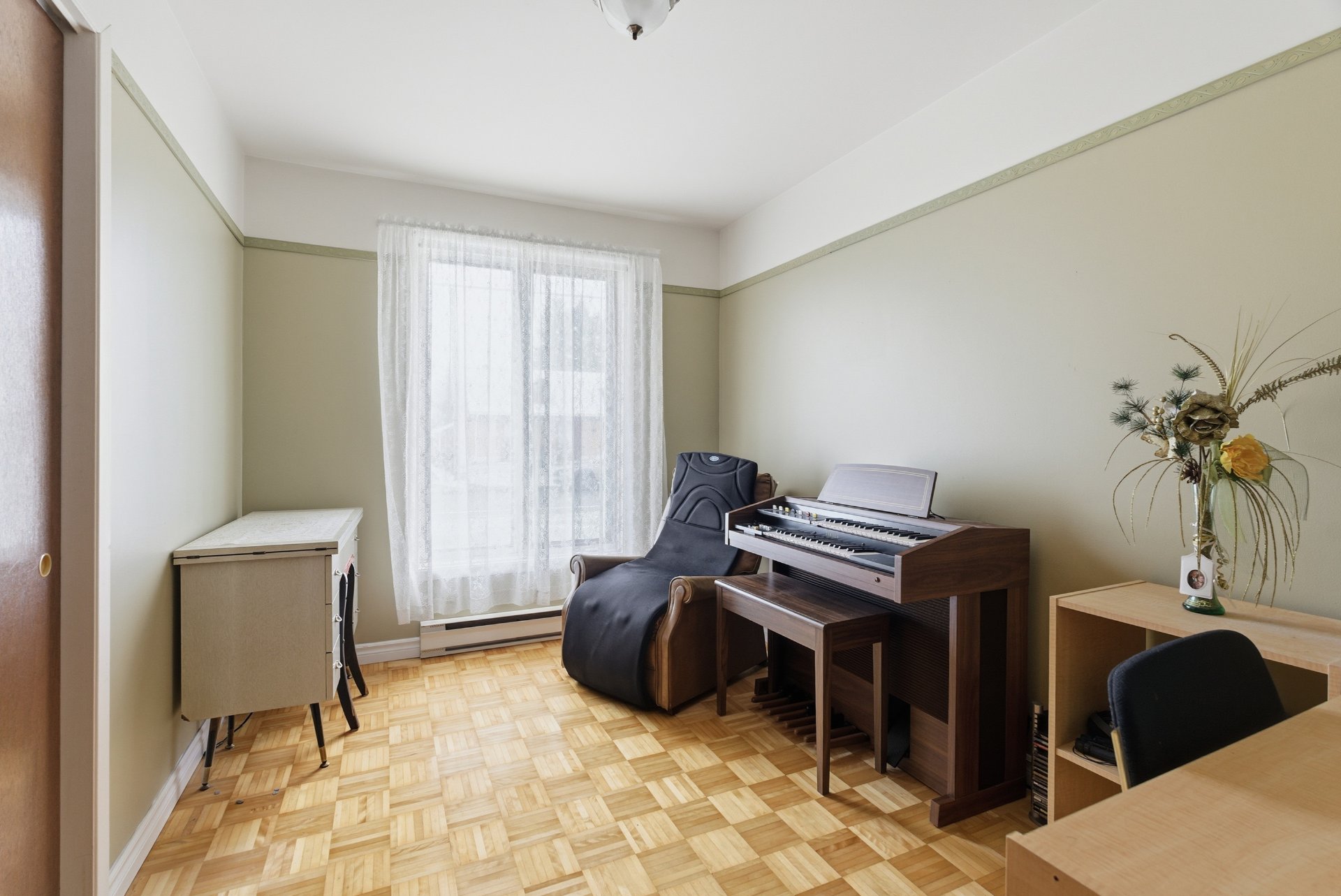| Chambre à coucher | 11.8 x 9.2 P | Rez-de-chaussée | Parqueterie |